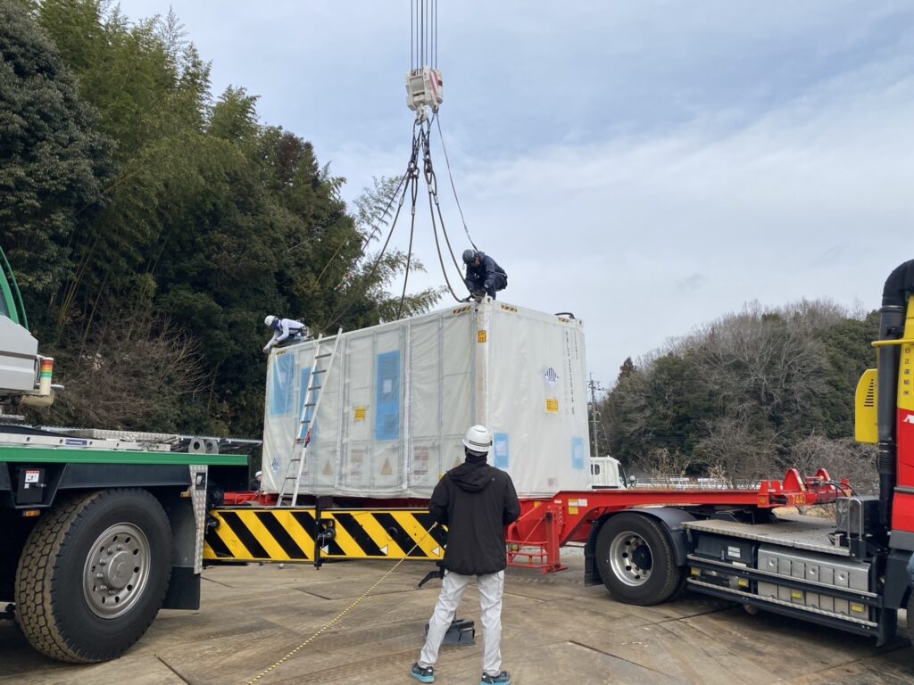 広島県東広島市の案件で蓄電池機器搬入を行いましたのでご報告いたします。